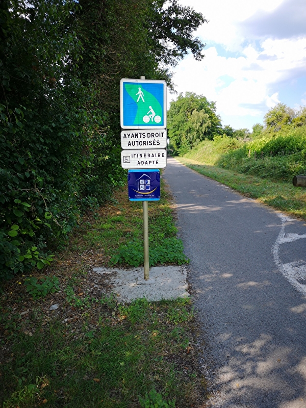 Itinéraire de promenade labellisé Tourisme & handicap pour les handicaps moteur, auditif et mental. Cet itinéraire sécurisé long de 2km offre une balade ombragée sur l’ancienne ligne de chemin de fer. Le parking est aménagé, les équipements (tables, bancs, panneau d’information…) sont adaptés et le cheminement totalement goudronné facilite le déplacement.
